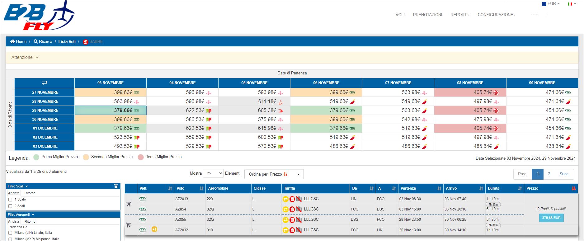 In collaborazione con i GDS Sabre e Travelport, leaders globali nei Sistemi di Prenotazione per Agenzie di Viaggio, mettiamo a disposizione uno strumento avanzato che permette di cercare le migliori tariffe disponibili tra tutte le compagnie aeree del mondo.